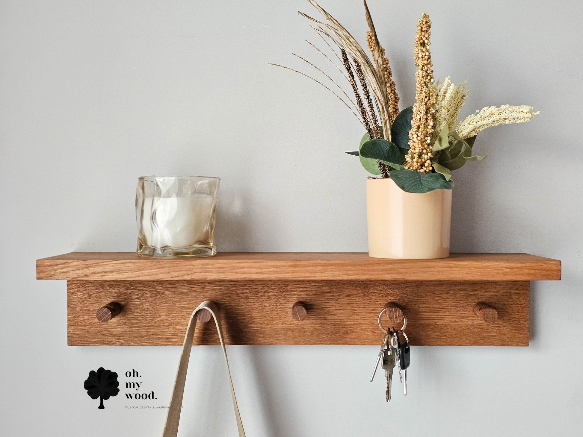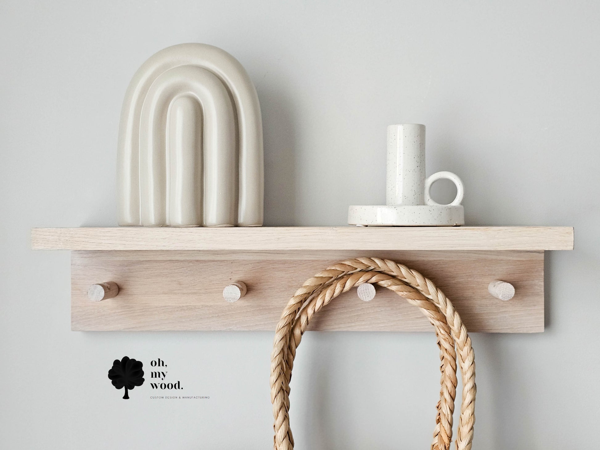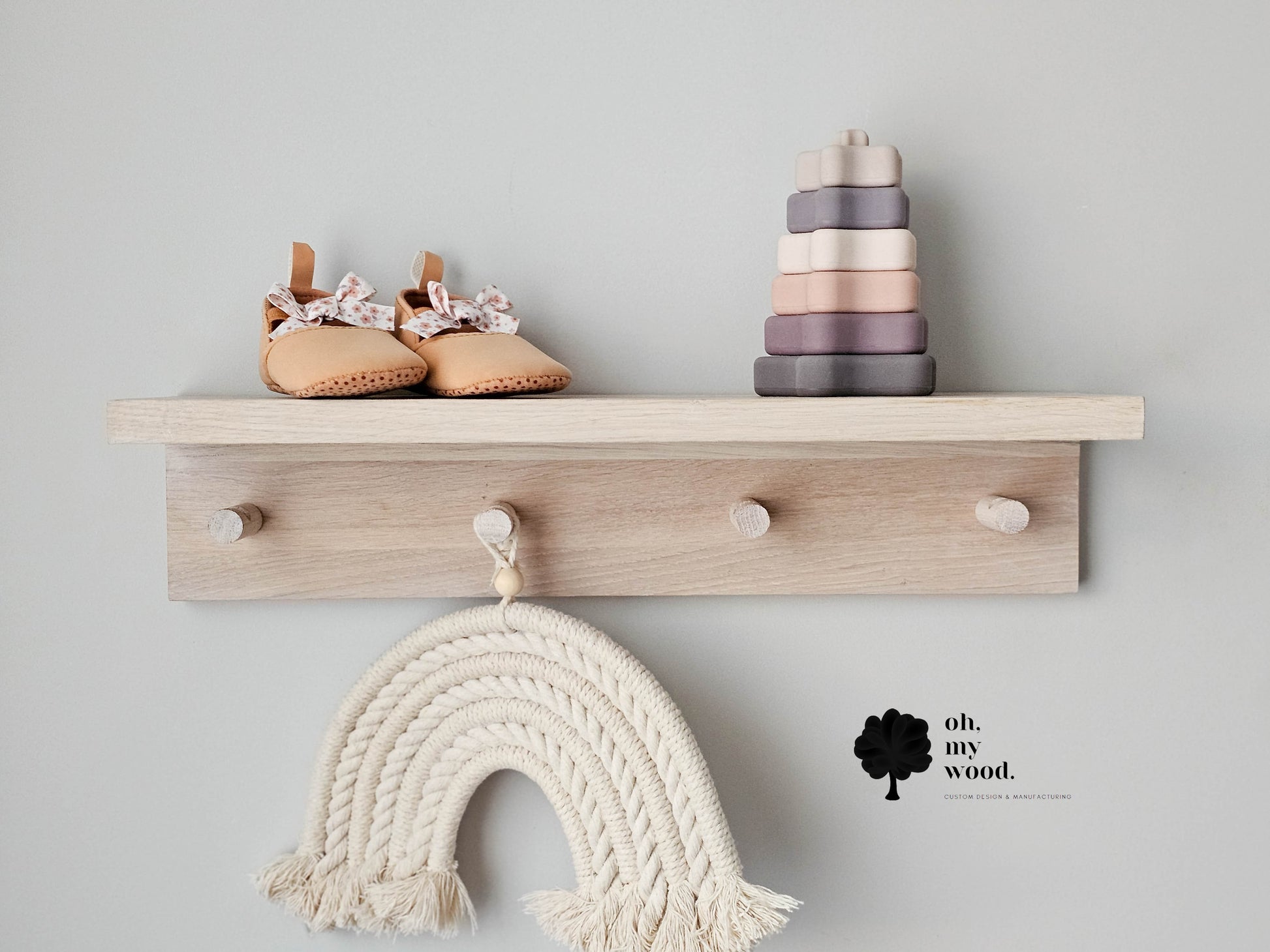 This wooden organizer is a great space saving way to hang backpacks, hats, coats and other accessories! It also has a display shelf where you can place your kids' favorite toys, decor, or other items.